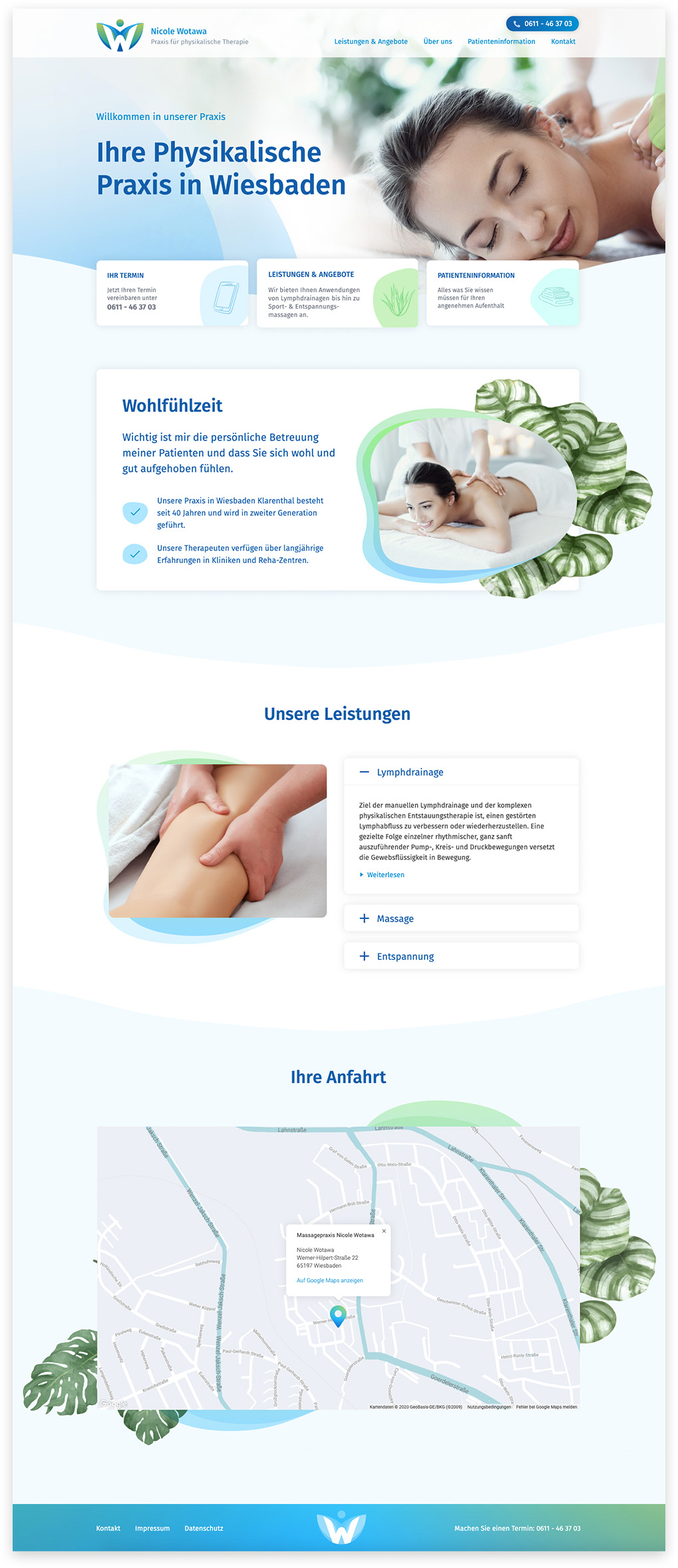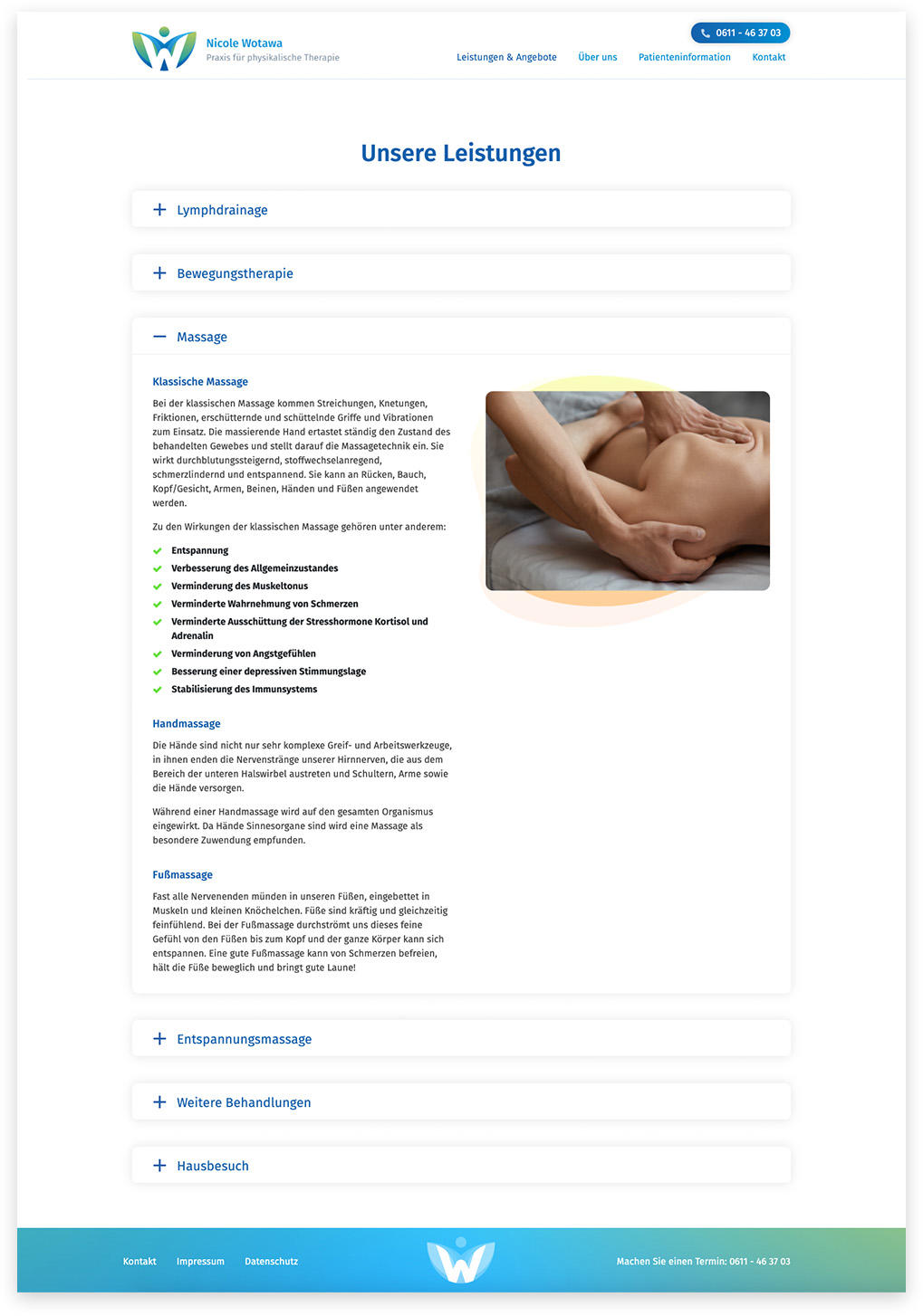 Der neue Internetauftritt der Praxis für Physikalische Therapie Nicole Wotawa ist übersichtlich aufgebaut und spiegelt den Charakter der Praxis wieder, indem er Professionalität in einer entspannten Atmospähöre vermittelt.